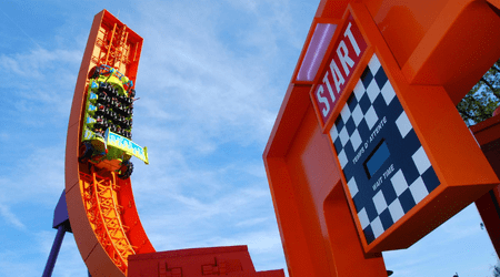 Viva as histórias da Pixar! Encolha-se ao tamanho de um rato em Ratatouille: The Adventure, corra com Relâmpago McQueen ou divirta-se na Crush’s Coaster (do filme Procurando Nemo).